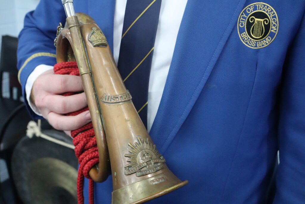 The honour of performing the Last Post by the gravesite has been given to the City of Traralgon Bands’ 19-year-old bugler, Lachlan Wilson.